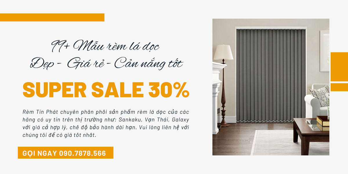 Hiện chúng tôi đang có chương trình giảm giá 30% các sản phẩm rèm lá dọc. Vui lòng liên hệ với chúng tôi để được tư vấn tốt nhất!
