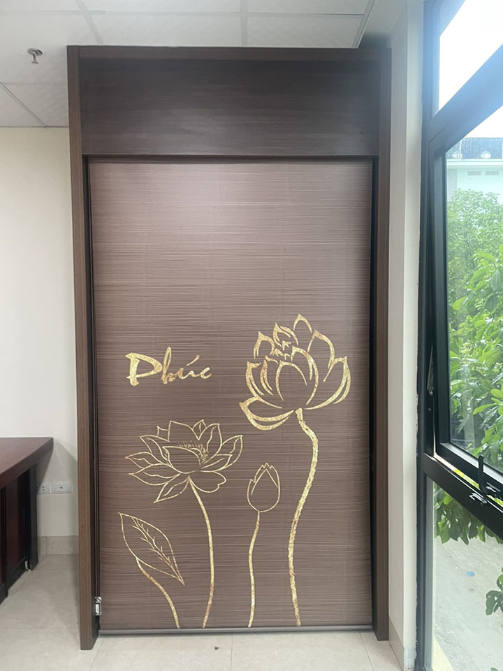Mẫu rèm cuốn in họa tiết hoa sen che ban thờ cực đẹp